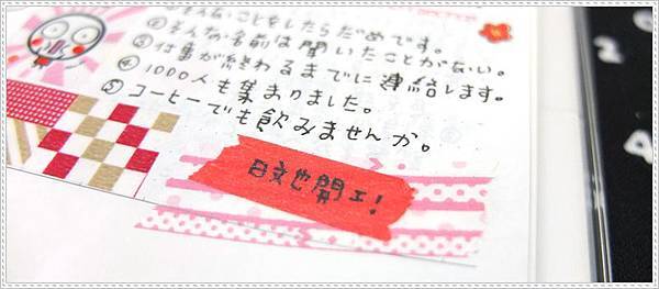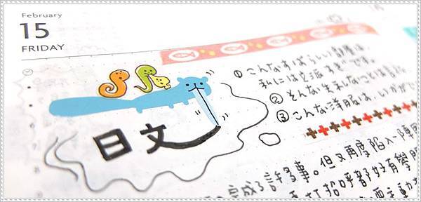 ▲ 日文也要紅通通路線,下面壓著小蛇的紙膠帶。(不仔細看誰知道那是蛇咧!!)
