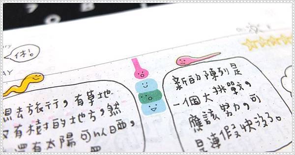 ▲ 有點花俏的兩頁,有小插圖還有貼紙,也首度在ED!T用了半透明點點貼,像是粉嫩的泡泡們!