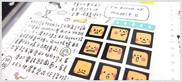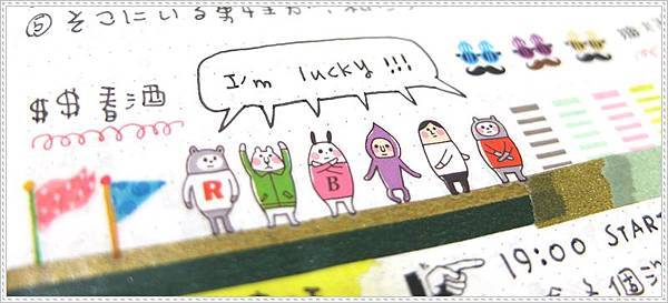 下面貼了一整排的小人物(是小動物吧?) 同樣系列的小貼紙貼一排站在紙膠帶上總是很可愛喔!!