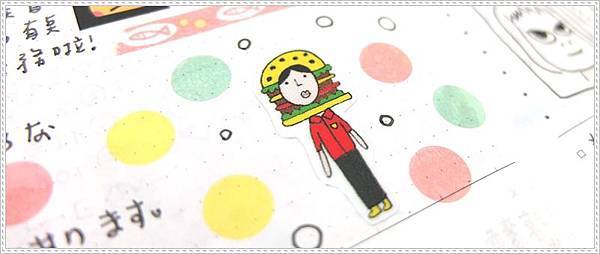 ▲ 右手超人的小貼紙,厚唇實在是很性感。首度加了半透明的小圓貼紙,整個漢堡小姐變夢幻了。(是幻覺!)