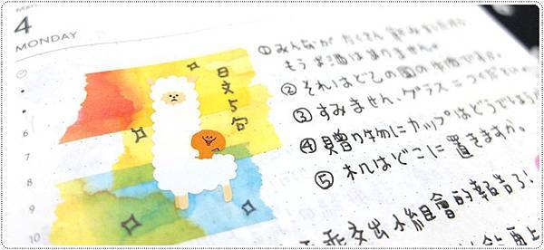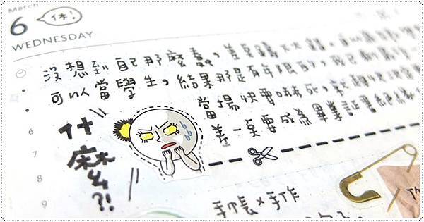 ▲ 這張貼紙應該很多人貼在手帳上吧~ 然後上面是快沒水的印台印出來的唷,黑色變灰色。