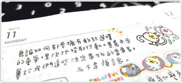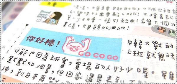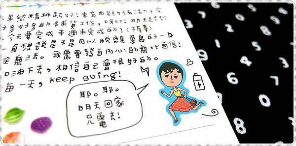 ▲ 看到好句子。想嘆氣時就微笑。(而且身邊永遠都有啦啦隊唷!!!)然後發現有很適合的小貼紙,就貼在一起了。