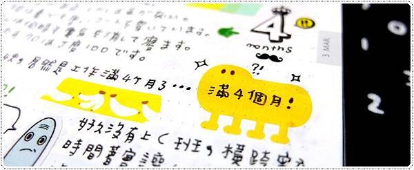 然後工作滿四個月了啦,好感動喔嗚嗚,幫"4"加了皇冠貼紙和翹鬍子貼紙,整個貴氣了!