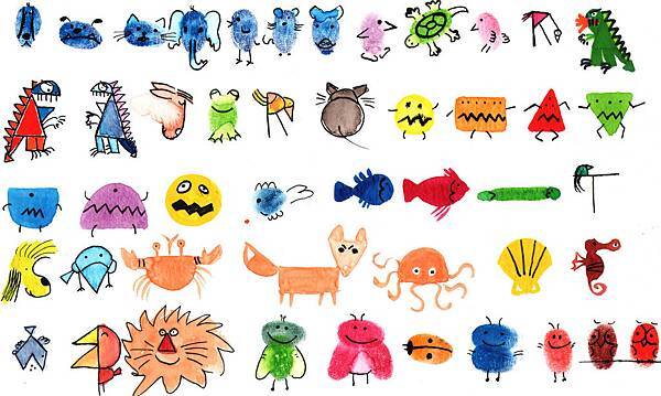 Ed Emberley有很多教人家畫畫的書。也有指印的。