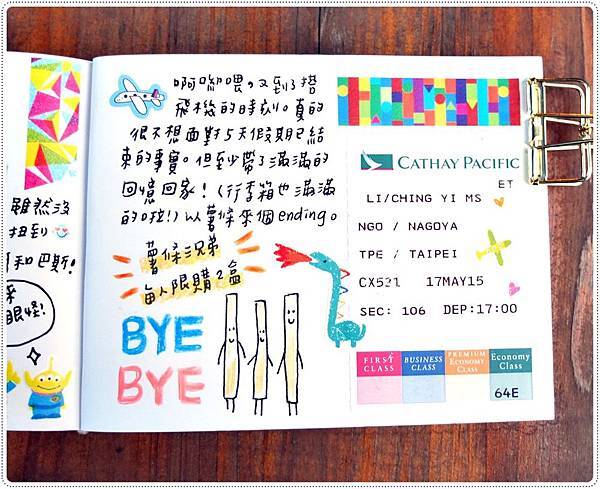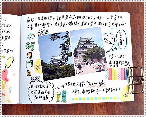 這篇先拍整頁的照片,介紹行程。下一篇再拍細節介紹拼貼和使用的文具。