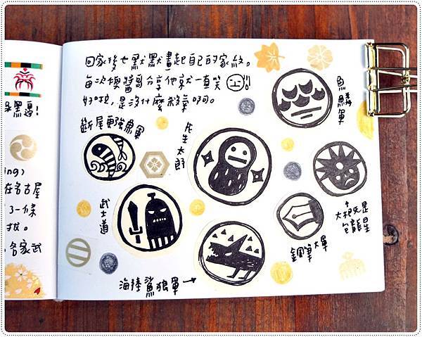 回台灣後開始一直畫家紋,然後對戰國時代各家家紋提出一些意見。(自以為評審這樣)