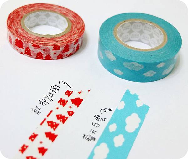 一捲紅色耶誕樹10mm,一捲是藍天白雲15mm~貼起來顏色滿美的喔!!!!