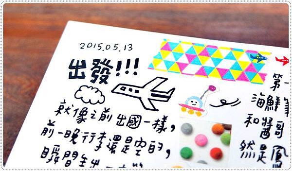 出發的時候很堅持都要來個飛機圖這樣。不管是貼紙還是自己畫都可以,還有出發日期喔別忘了。