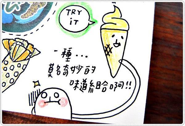 哇莎米冰淇淋這麼特別的食物也一定要畫一下,表情難以形容反正就是很莫名的組合。