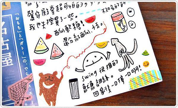 因為標題到小插圖處處都有用色鉛筆,所以色鉛筆筆觸的貼紙,用在這本本子很適合。