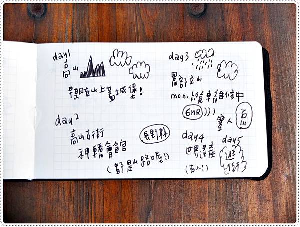 總之就是一本塗鴉本,想到什麼就寫什麼,以防漏掉旅程細節。