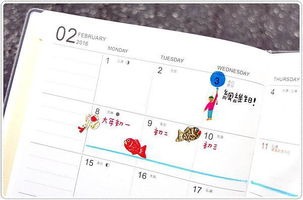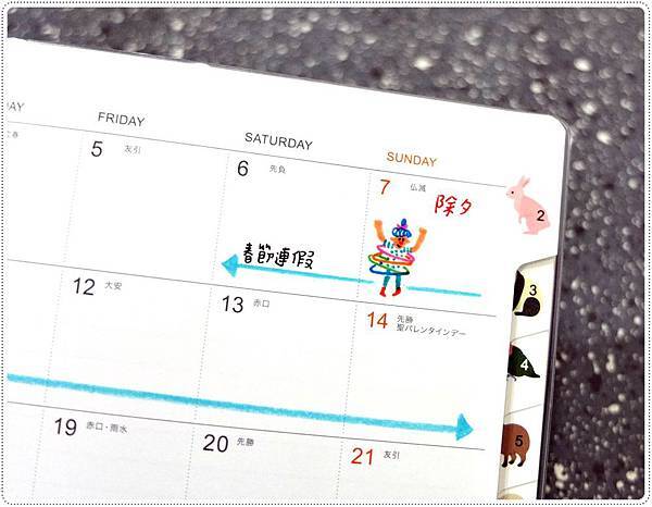 二月標示了弟弟的生日和春節連假。