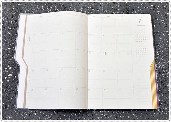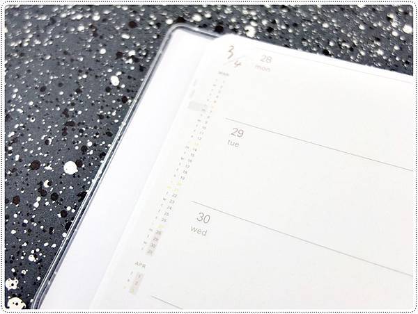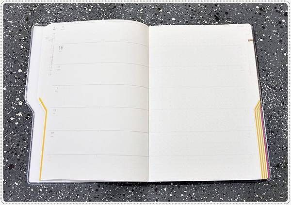 中間點有做標記,可以讓手帳分成左右使用。