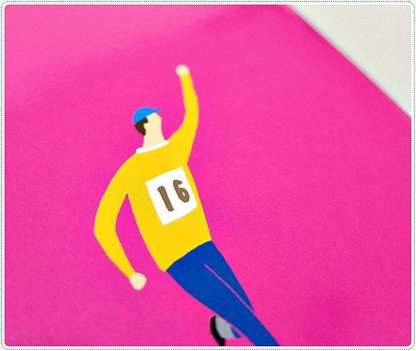 我買的是桃紅色封面那個16號跑步選手。光是包裝左上角的貼紙就讓我覺得很可愛了啊!!
