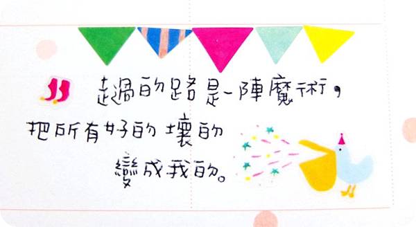 上面小旗子是可以分開貼的喔,我選了五個顏色自己搭。所以要貼多長是可以自己控制的。